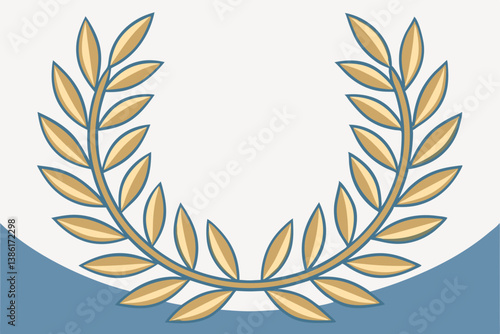 laurel wreath, gold, leaf, victory, achievement, success, award, honour, decorative, vector, illustration, graphic, design, clip art, symbol, frame, heraldic, emblem, isolated, tree branch, blue, banner, certificate, elegant, minimalist, simple, modern, background, pale
