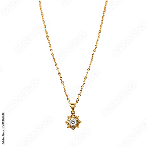 Elegant gold necklace with diamond pendant.
