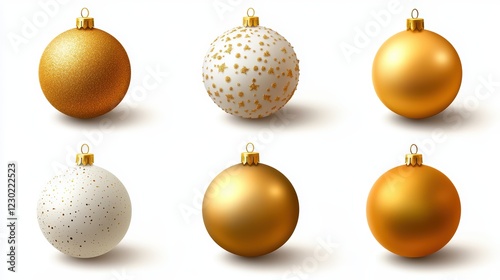 Elegant golden and white christmas balls set, festive decorations for a sparkling holiday season