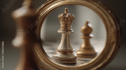 Elegant Golden Frame Reflected Chess Piece Strategy Game Achievement Still Life