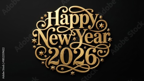 new year, greeting, celebration, year, 2026, gold, elegant, ornate, circular, text, design, decorative, holiday, festive, shiny, background, abstract, number, symbol, script, calligraphy, star, swirl, typography, graphic