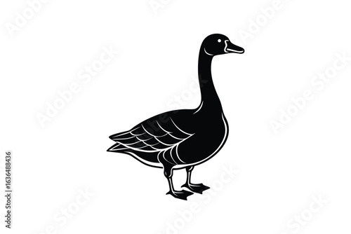Elegant Goose Standing Profile View in Black Silhouette Style on a White Background silhouette