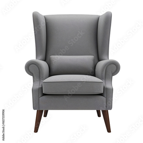 Elegant gray armchair with classic wingback design providing comfort and style isolated