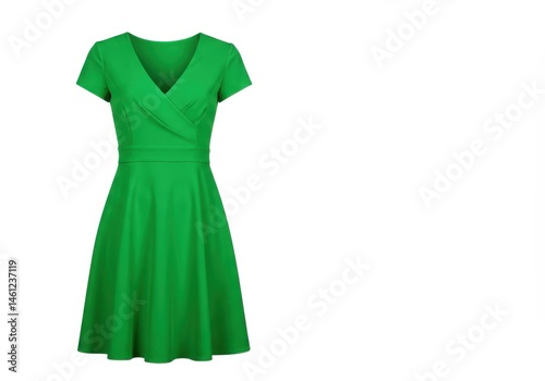 dress, green, sleeve, clothing, fashion, style, apparel, fabric, elegant, short, enclosed, waist, skirt, casual attire, wear, design, textile, cut, trendy, modern, chic, outfit, garment, female, summer, spring, isolated, background, white