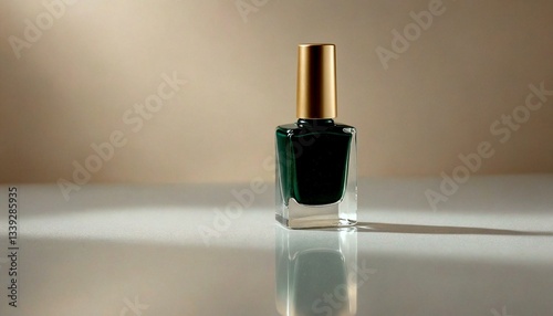Elegant Green Nail Polish Bottle on Reflective Surface
