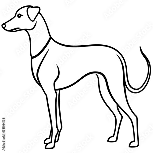 dog, greyhound, animal, canino, pet, mammal, breed, sighthound, racing, athletic, slender, elegant, graceful, standing, profile, side, view, outline, line, art, illustration, drawing, vector, graphic, icon, silhouette, isolated, white, background, clean, minimalist, simple, design, domestic, companion