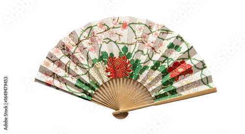 Elegant Hand Fan with Floral Design A Touch of Art and Tradition on White Background