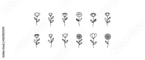 Elegant hand-drawn floral designs showcasing various flower types and styles on a minimalist background