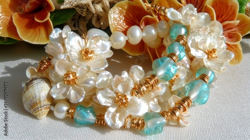 Elegant Handmade Necklace with Natural Shell and Ocean Elements in Floral Design