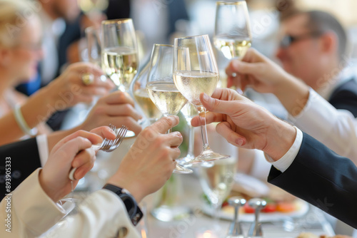 celebratory, elegant, cheer, party, celebration, drink, toast, closeup, festivity, happiness, friends, occasion, luxury, festivity, sparkling wine, togetherness, joyous, upscale, glassware, cheerfulness, socialising, refined, white wine, oneness, dining, gathering, event, special occasion, moment, high spirits, friendship, enjoyment