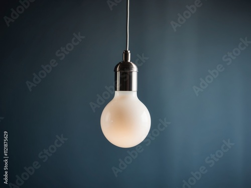 Elegant Hanging Light Bulb on a Dark Blue Background Perfect for Contemporary Design Projects.