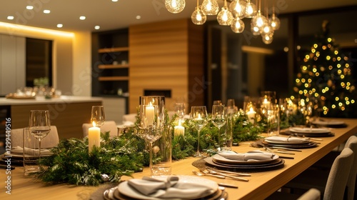 elegant, holiday, dining, table, candle, greenery, modern, home, setting, festive, decoration, interior, design, dinner, plate, goggles, chandelier, lighting, christmas, tree, centrepiece, wooden, cosy, celebration, arrangement, romantic, seasonal, decor, kitchen, luxury, bright, warm, ambience, stylish, living, room, atmosphere, welcoming, detail, harmonious, aesthetic, sophisticated, tidy, organised, inviting, classic