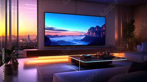 no one, sunset, evening, dusk, technology, travel, sky, light, sun, indoor, water, room, motion picture, dawn, landscape, broad, illuminated, plasma, architecture, outdoors, furniture, screen, sea, contemporary, luxury, family, television, blur, music, dark, culture, environment, art