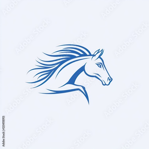 horse, animal, head, profile, silhouette, abstract, design, logotype, vector, illustration, graphic, artwork, drawing, line, blue, white, background, simple, elegant, art, style, modern, contemporary, beauty, power, speed, freedom, wild, nature, spirit, symbol, mammal, equine, image, digital, symbolism, colours