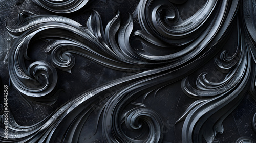ink, pattern, swirling, abstract, shape, black, grey, composition, canvas, leaf, vine, fluid, motion, visual, dance, calmness, thoughtfulness, depth, dimension, contour, dynamic, aethereal, elegant, monochrome, artistic, dramatic, texture, design, graceful, intertwined, soft, serene, movement, intricate, harmonious, creative, contrast, minimalist, detailed, imaginative