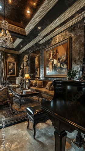 interior, piano, artwork, room, luxury, chandelier, furniture, light, design, decor, modern, review, warmth, texture, classic, attracted, detail, posh, furnish, chic, curtain, colours, statement, sofa, vintage