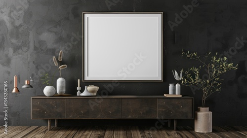 interior, design, canvas, frame, dark, texture, modern, decor, home, living, room, wooden, floor, minimalist, plant, vase, light, furniture, wall, blank, picture, artwork, presentation, display, style, apartment, contemporary, creative, elegance, indoor, setting, decoration, staging, simplicity, stylish, surface, background, showcase