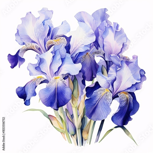 iris, watercolor, floral, botanical, painting, art, flower, blue, purple, white, delicate, soft, artistic, artwork, bloom, blossom, bouquet, elegant, detailed, flower petals, isolated, spring, summer, nature, flora, stem, leaf, romantic, graceful, illustration, design, art nouveau, decorative, vintage, retro, graphic, handcraft, drawing, texture, stylised, vibrant