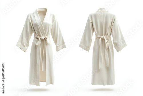 robe, ivory, cream, white, clothing, apparel, fashion, garment, bathrobe, soft, luxury, comfort, style, elegant, minimalist, presentation, background, floating, attaching, enclosed, studio shot, relaxation, spa