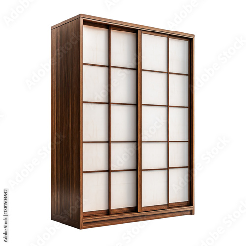 Elegant Japanese-style wooden wardrobe with sliding shoji doors and grid panels, ideal for minimalist or Zen interiors.