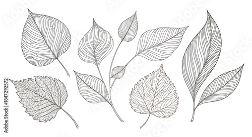 Elegant Leaf Line Art Collection for Botanical Designs.