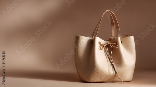 personal, material, feminine, leather, commerce, item, woman, closeup, colourful, modern, background, retail, clean, smooth, beautiful, tote, bright, fashion, bucket, sophisticated, luxury, container, carry, chic, accessory, object, beige, shimmer, copy space, light, simple, soft, neutral, refined, drawstring, gold, shadow, metallic, pursed, texture, presentation, style, design, crafted, product, elegant, supple