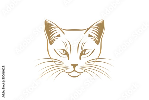 Elegant line drawing of a cat's face with intricate details in golden tones on a white background.