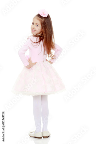 Elegant little girl in a pink dress.