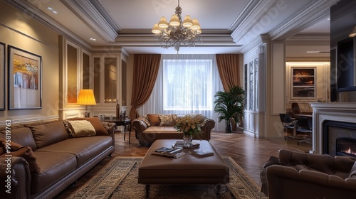 Elegant living room featuring a cozy atmosphere with a warm color palette and tasteful decor.