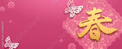 fuchsia, copy space, flower, banner, butterfly, chinese new year, culture, elegant, floral, greeting, oriental, ornament, pink, flourishing, traditional, vector, blank