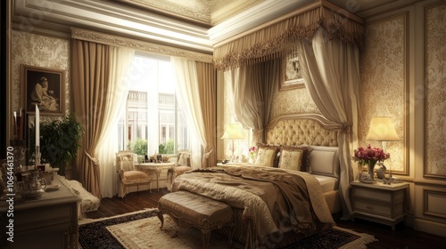 bedchamber, interior, luxury, decor, design, furniture, curtain, lighting, elegance, comfort, home, relaxation, soft, plush, style, vintage, warm, flower, space, atmosphere, cosy, seating, wall, art, window, nature, view, rug, modern, ambience, chic, classic, aesthetic, arrangement, environment, furnishing, intimate, homelike, lavish, beauty, attracted, inviting, serene, opulence, retreat, timeless