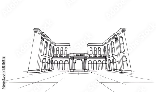 Elegant Mansion Sketch: Detailed Architectural Line Drawing. AI Generated