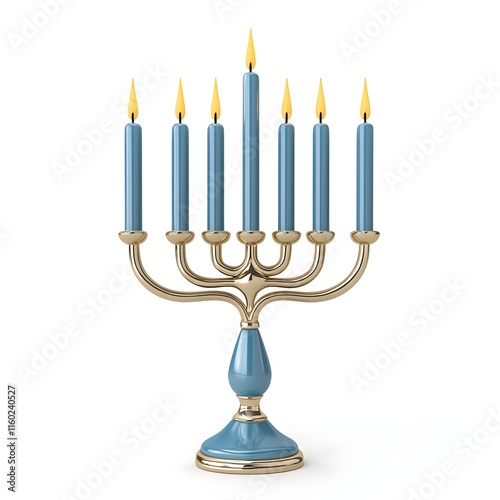 Elegant Menorah with Blue Candles Standing Tall and Glowing Softly