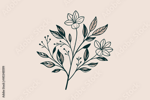Elegant Minimalist Floral Branch with Delicate Flowers and Leaves