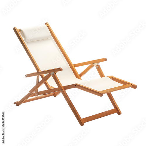 Elegant Minimalist Wooden Beach Chair with White Cushions Isolated on Transparent Background