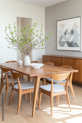 dining, room, table, chair, decor, nature, modern, wood, art, vase, branch, interior, style, aesthetic, minimalism, furniture, space, ambience, simplicity, contrast, elegance, harmony, lighting, layout, colours, texture, warmth, arrangement, greenery, chic, atmosphere, craftsmanship, sophistication, living, attracted, home, inviting, personalization, creativity, inspiration, balance, dimensioning, essence, welcoming, flow, uniqueness, visual, enhancement, customization