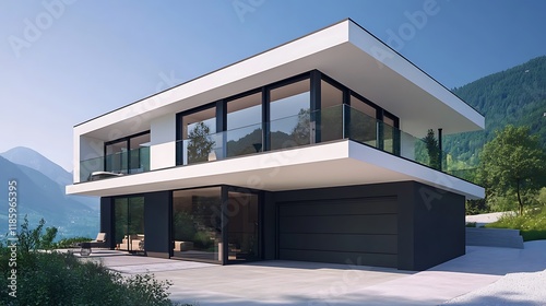 Elegant Modern Villa with Multi Story Windows and Minimalist Structure