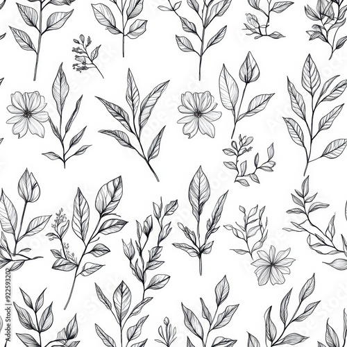 Elegant Monochrome Botanical Sketches - Seamless Floral Pattern