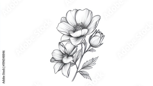 Elegant Monochrome Floral Sketch: A Delicate Bouquet of Flowers in Pencil