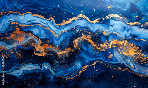 Elegant Navy Blue and Gold Marbling Texture with Paint Swirls, Modern Abstract Background, Luxurious and Artistic Design for Graphic Resources and Creative Projects