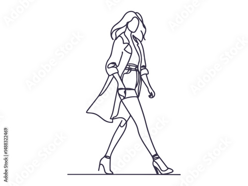 Elegant One-Line Drawings of Women Walking in Fashionable Outfits – Minimalist Female Line Art Illustration Set.