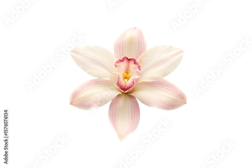 Elegant orchid bloom with soft pink petals and distinctive red speckled labellum displaying natural orchid beauty, isolated on a transparent background