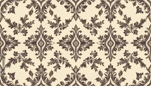 elegant ornamental seamless pattern with fine detailing and rich shadows suited for upscale interior textiles and fashion backgrounds