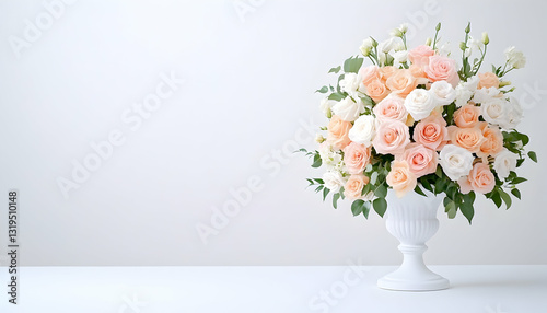 Elegant peach and white roses in a decorative vase