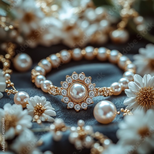 jewellery, elegance, luxury, pearl, glamour, feminine, beauty, classic, high-end, daisy, romantic, opulent, closeup, sophisticated, special occasion, bridal, timeless, precious, detailed, ornamental, soft focus