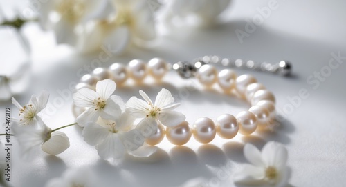 Elegant Pearl Bracelet with White Decorative Flowers