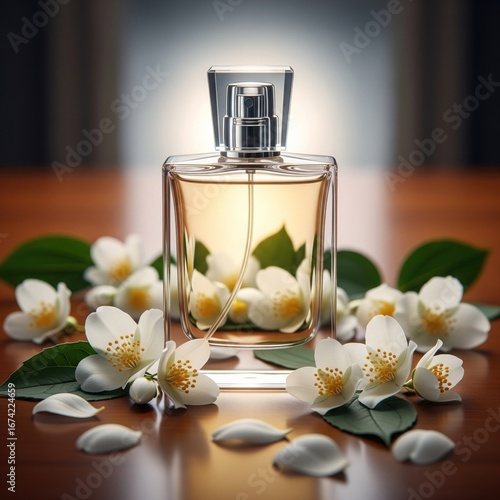 perfume, perfume, bottle, fragrance, aroma, scent, elegant, luxury, beauty, cosmetic, floral, flower, flower petals, jasmine, natural, aromatherapy, aromatherapy, fresh, feminine, feminine, glasses, stylish, style, modern, posh, glamour, premium, design, cardboard box, soft, romantic, love