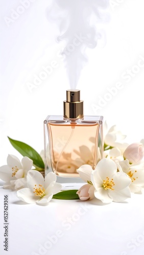 Elegant Perfume Bottle with Jasmine Flowers and Steam