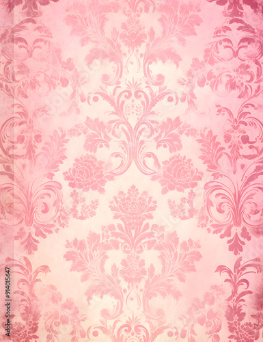 Elegant Pink Floral Damask Pattern - A seamless wallpaper design featuring intricate floral motifs in various shades of pink, with soft textures and delicate shadows creating a luxurious vintage look