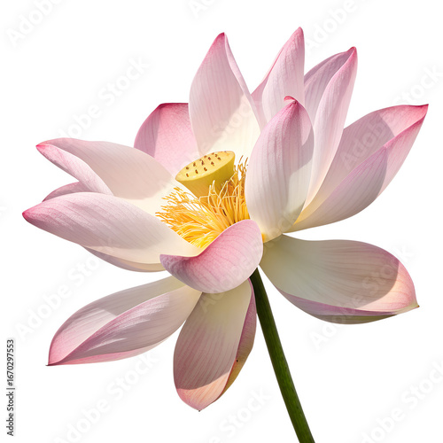 Elegant pink lotus flower in full bloom isolated on transparent background, a symbol of purity